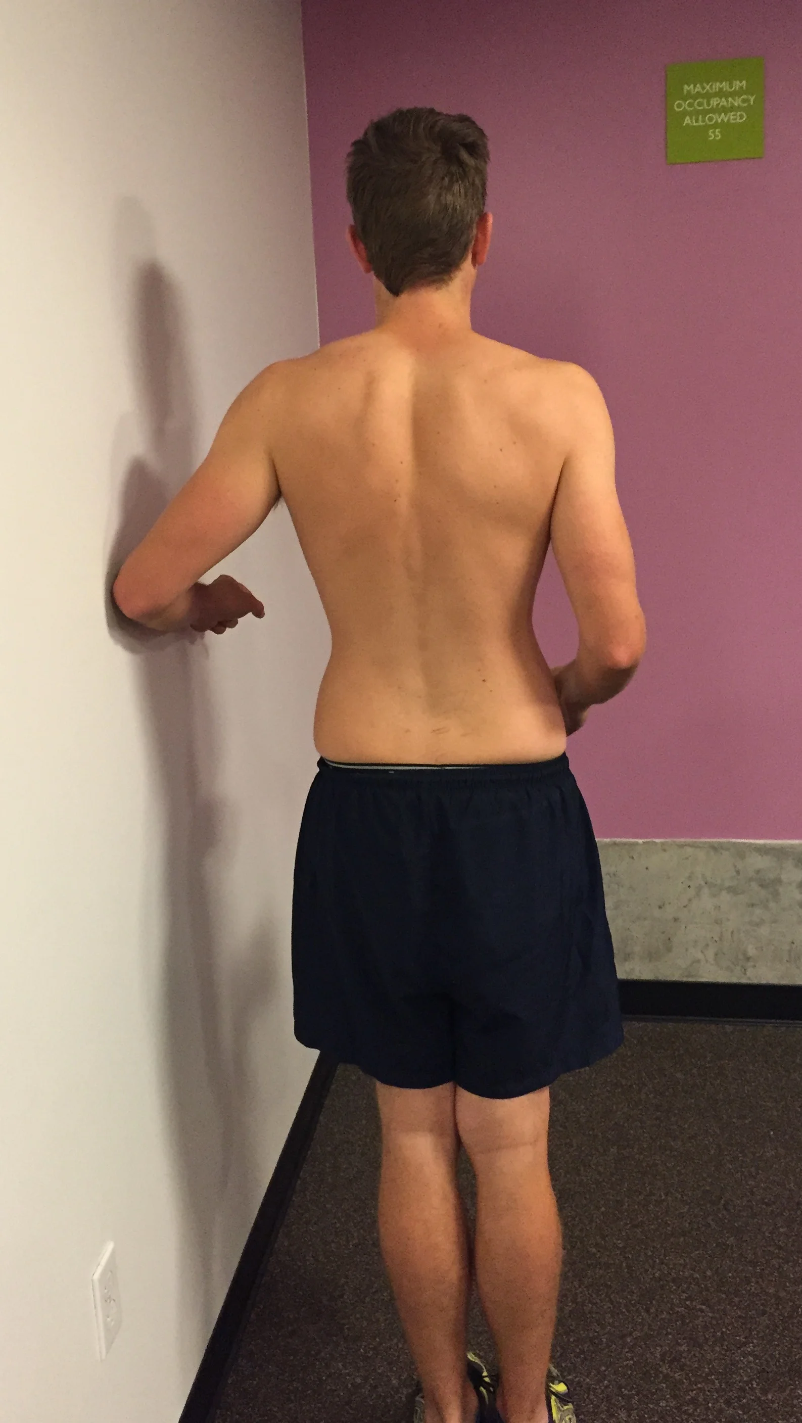 A picture of me trying to demonstrate the posture of Sally on initial presentation. Sometimes its not this obvious and if I am not sure if there is a list present, I run my fingers down the spinous process' to double check. This is when I find the small lists which aren't observable but still clinically relevant and respond well to list-correction strategies.